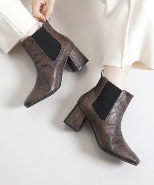 トレンドのスクエアトゥシューズ。シンプルなデザインのショートブーツなので、系統問わず合わせやすい一足。サイドゴア仕様で、脱ぎ履きもしやすいのも嬉しいポイント。【素材・サイズ感】S~LLの4サイズ展開。太ヒールなので安定感もばっちりです。無地とパイソン柄からお選びいただけます。