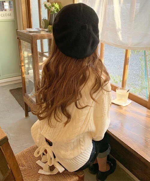 ボリュームシルエットに、バックリボンでトレンド感のあるケーブルニット。 バックのリボンがアクセントになり、 デニムはもちろんスカートと合わせて甘めなコーディネートも楽しめる、 今年活躍間違いなしのアイテムです◎