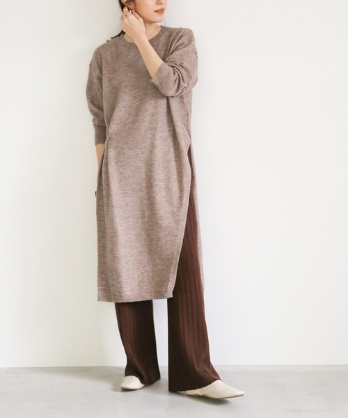 深めのカッティングが目を惹くニットワンピース。 動くたびに揺れるシルエットと、ボタンを施してでるくしゅっと感が 魅力の1枚です。ネックはクルーネックで仕上げ、洗練された大人な印象に。 ワイドパンツはもちろん、スカートとの相性も良くい程よい丈感で スタイリングを楽しんでいただけます。 ※モニター・環境等により実際の商品と多少色味が異なって表示される場合がございます。 予めご了承をお願いいたします。 【お買いものをお楽しみいただく為に!】 ▼商品のお気に入り登録 完売カラーの再入荷通知や、ラスト1点の通知、セールの通知も受け取ることができます。 ▼ブランドのお気に入り登録 新商品や再入荷など、いち早くブランドのお得な情報を受け取ることができます!