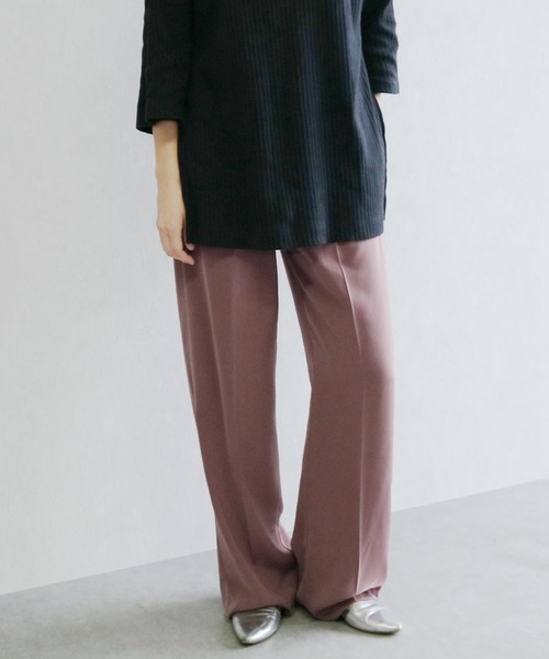 ■ポイント■落ち感のあるシルエットがこなれたスラックスパンツ シルエットにこだわったセンタープレススラックスパンツ。 全体的にゆるっとまとめたコーディネートが今年っぽくておすすめ。 ■生地感■ 春まで着まわせる薄手素材。 テロンとした落ち感のある柔らかな生地感。 ※モデル着用写真は撮影環境により、多少実際のカラーと異なる場合がございます。予めご了承をお願いいたします。 ※サイズは現物をスタッフが平置き採寸したものになります。 ※生産時期により若干の色ブレやサイズの変動が生じる場合がございます。予めご了承くださいますようお願いいたします。