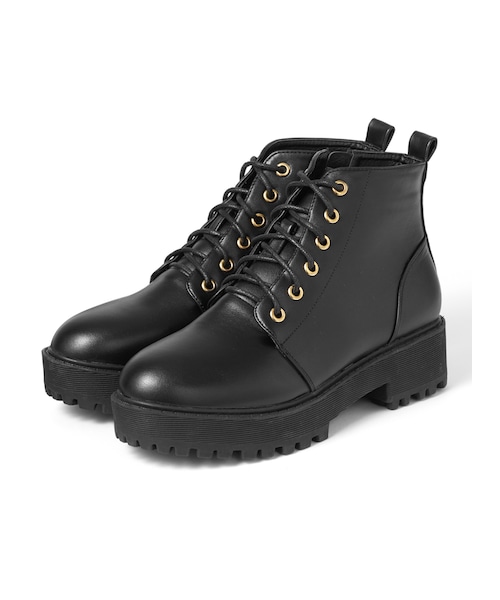 すっきりとしたシルエットが、上品な雰囲気を醸し出すショートブーツ。 控えめなレースアップは女性らしいルックスに仕上げてくれるポイント。 安定感のあるタンクソールで歩きやすさもバツグン。 内側にファスナーがついている着脱楽チン仕様がうれしい。 ★履き口内周のサイズは、縫製の関係で、多少異なる場合があります。 ★中敷き全体に弾力性の高いクッションを使用し、疲れにくく歩きやすいです。