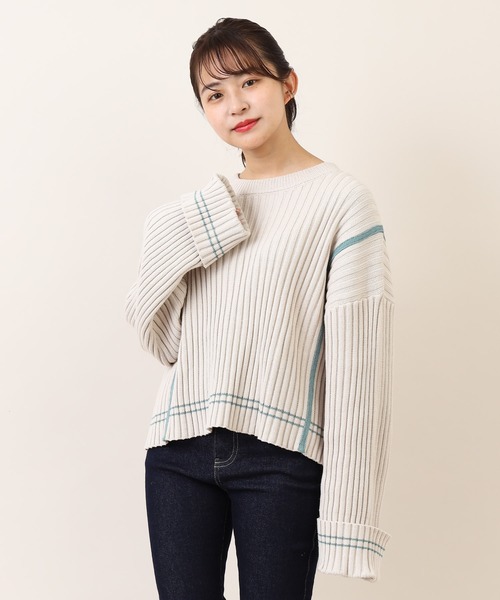 mlineにvol.4が登場!今回はスポーティー要素も入った新しいラインナップです! ラインが特徴の、リブニットです! ワイドな袖がトレンド感満載で、ショート丈のデザインが可愛らしい印象です。 ベーシックなベージュにブルーの配色ラインが、大人っぽく使える一枚。 女子感のあるくすみピンクは、ブラウンの配色ラインで主役の一枚に! スキニーや台形スカートのシンプルなボトムとの相性が抜群です◎ ※配色製品のお取り扱い上のご注意 この製品は色が何色も用いられたものです。色移り・色泣きの原因となりますので下記の点にご注意ください。 ・雨などに打たれた場合、濡れた状態でバッグ等に押し込んだままにしたり、重ね置きなどをしないで下さい。手早く乾いた布でできるだけ水分をふきとり、すみやかに陰干ししてください。 ・水洗いの出来る商品でも、つけ置き洗いは厳禁です。水につけ置くことによって染料が流出しやすくなります。速やかに洗濯し、すすぎを十分に行ってから脱水し、形を整え陰干ししてください。 ・ドライクリーニング処理をされる場合は、配色部分の色泣きを防ぐため、洗濯中の溶剤管理に注意し、十分なすすぎ処理後ぬれた状態での放置はさけ乾燥処理をお願いします。 ※お取り扱い上のご注意 (ニット製品) 洗濯はドライクリーニングをおすすめしますが、手洗いの際は次の点にご注意ください。 ・洗濯液は30℃のぬるま湯で、中性洗剤を十分にとかしてから洗ってください。 ・洗濯物は裏返しにして折りたたみ、片側をそれぞれ20回程度押し洗いしてください。 ・絞りは、遠心脱水機で1分程度。 ・洗濯後は、形を整え日陰で平干しにしてください。 ・アイロンは、あて布の上から中温で。 ・乾燥機のご使用は、避けてください。