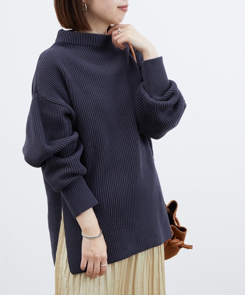 今から春まで長く使えるコットンアクリル素材のスリットプルオーバー表情のある畦編みがポイント!コットンアクリル素材で今から春まで長い期間大活躍してくれる1枚です。首元のボトルネックデザインが全体のアクセントに。縦長のシルエットで作っており、シャツをインしたり、センタープレスの細身のパンツと合わせたり、デニムに合わせたりとカジュアルダウンしやすい形に仕上げました。どんなボトムとも相性抜群の万能アイテムです。※画像の商品はサンプルです。お届けする商品に仕様・サイズ等の変更が生じる場合がございます。予めご了承ください。※ロケ撮影画像は、光の当たり具合で色味が異なって見える場合がございます。商品の色味は、スタジオ撮影の画像をご参照ください。