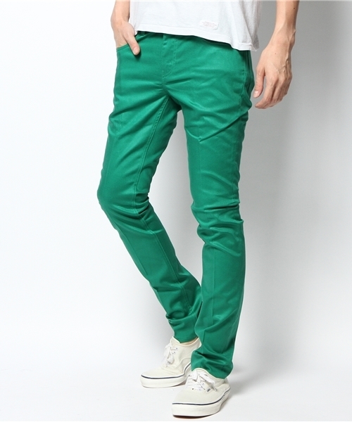 ウルトラストレッチ素材が抜群の伸縮性を見せ、非常に履き心地の良いスキニーパンツ! 股上が短く、スリムなシルエットでセンタープレスなどが入っていないまさにスキニーパンツと言ったデザイン。 エクストラスリムワークパンツなどとはまた違ったストリート感をプラスすることができる一着。 model H180 B83 W76 H88 着用サイズ:30inch