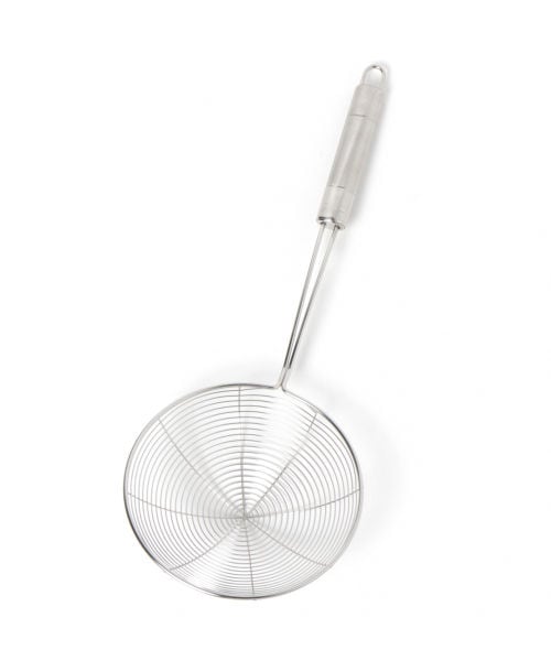 具材の湯切りや油切りにお使いいただける、網じゃくし。
