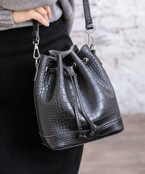 旬の巾着ショルダーは、クロコの型押しでリッチに昇華 艶めくクロコの型押しが、高見えする巾着ショルダーバッグ。ラフな巾着型も、こんなマテリアルならリッチで大人顔な印象に仕上げます。パッと目を引くデザインなので、シンプルなスタイルのポイント使いとしてもおススメです。 ▼キーワード #巾着 #ドロスト ▼ATTENTION▼ ※摩擦や汗、雨等で濡れた場合、他の衣料に色移りする場合がございますのでご注意下さい。 ※撮影時のライティング、PCやスマートフォンの環境により写真の色味が実際の商品と異なって見える場合がございます。ご了承の上お買い求め下さいませ。モデル着用画像は実際の色と多少異なる場合がございますのでマネキン画像をご確認ください。 ※製造過程や素材により染料等の臭いが強い場合がございます。臭いが気になる場合は一度陰干しされてからご使用下さい。 ※着用衣装はすべて参考商品です。 ―――――――――― 《 お買い物をもっと楽しむために! 》 ■商品のお気に入り登録 お気に入りの商品やカラーを登録していただくと 値下げ・在庫1点・完売後の再入荷などの通知を随時受け取ることができます。 ■ブランドのお気に入り登録 新商品の発売や再入荷、セール、クーポン配布など EditSheenのお得な情報を受け取ることができます。