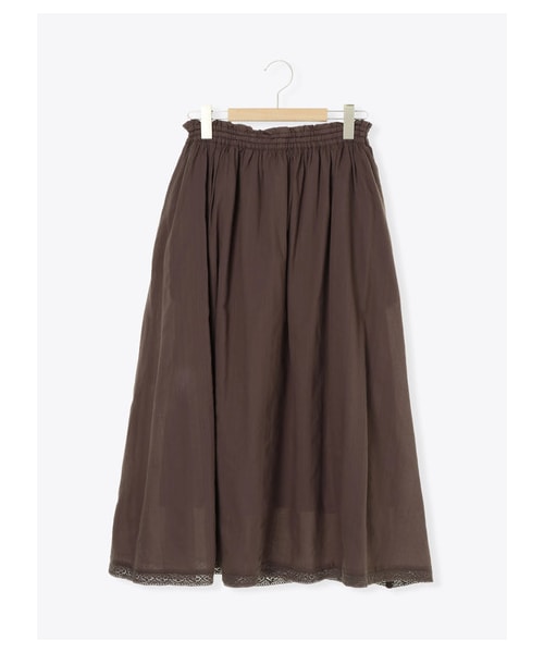 薄手のやわらかなコットンのドビーストライプ生地に、裾のレースが可愛らしいアクセントのスカート。 分量感たっぷりなシルエットが女性らしく、スタイリングをぐっと華やかな印象に。 裏地がついているので透けを気にせずに着用できるのもうれしいポイント。 ワントーンでまとめているのでさまざまなスタイリングに合わせやすく、デイリーユースの頻度も高まりそう。