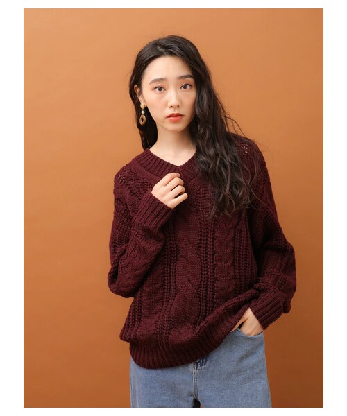 ざっくりと編んだ太めのケーブル模様がアクセントになったニットプルオーバー。 抜け感のあるヘルシーなVネックもポイント◎顔周りをすっきりとした印象に見せてくれます。 マシンウォッシャブル仕様なので、ご家庭で簡単にケアできるのも魅力です。