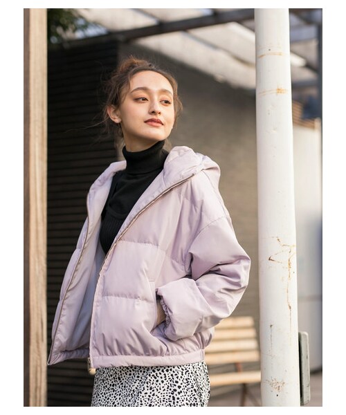 ボリューミーなシルエットが旬顔のフード付き中綿ブルゾン。 後ろの裾にはゴムが入っているので広がりを抑え、すっきりと着ることができます。 軽くてあたたかい着心地が魅力で、ヘビロテになりそうな予感の1着です。