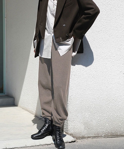 大人のこなれ感漂う、ニットジョガーパンツ ほどよいルーズさが抜け感のある、カジュアルスタイルを作ってくれるニットパンツです。 ウール混のニット地が暖かみのある印象に。 メンズライクだけど、ワークパンツほどハードではない、ニットの柔らかい素材で女性らしさを感じる1枚です。 裾絞りのデザインで、かっこよくブーツインで履いていただけます。 詳細補足 仕様:ウエストドローコード 伸縮性:ややあり 透け感:なし 裏地:なし 厚さ:普通 光沢:なし サイズ感:ややゆったり 【chuclla】 取扱注意事項 ※発送時の折シワがある場合がございますが、 ハンガーにかけ保管いただくと自然とうすくなっていきます。 ※サイズは、測定方法と測定者によって多少の誤差がありますのでご了承下さいませ。 また体型によって、サイズ感に個人差がございます。(平置き採寸) ※商品によってはシワがつきやすく、畳ジワや折りジワなどが強く出る場合がございます。 その際は加湿した風呂場に数時間干すか、スチームアイロンでのお手入れをお勧めしております。 ※生地の素材上、においが気になる場合がございます。 その際は陰干しして頂くと、ほとんど感じられなくなります。 ※レース等の繊細な素材を使用している場合には、お取り扱いにご注意下さい。 ※お洗濯の際には、洗濯専用ネットをご使用の上、個別での洗濯ををお勧め致します。 お色物は、色移りする可能性がございます。 ※着用画像は撮影状況や光によって、多少異なる場合がございますので、置き画像をご確認下さい。