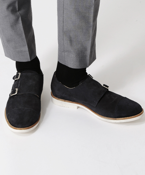 ★street Jack 12月号 掲載商品★ 万能型のレザーシューズはWモンクストラップで決まり! ポルトガルのファクトリーで製作したビームスオリジナルの『Wモンクストラップシューズ』。デイリーで使えるシンプルなデザインが魅力。 モンクストラップとは、靴ヒモではなくベルト(ストラップ)とバックルで甲を締めて固定する靴のことを指します。修道士("monk")が履いていた靴が起源といわれています。Wモンクストラップ(ダブルモンク)とは、名前のとおりストラップが2本あるモンクストラップのことです。素材も秋冬のコーディネートにハマリやすいスェードなのがポイント。 様々な着こなしに合う『Wモンクストラップシューズ』 モンクストラップはさまざまなスタイルに合わせることができ、コーディネートの幅が広い革靴。カジュアルシーンでは、デニムやチノと合わせてもOK。スェード素材なので、スラックスにウール素材のトップスで合わせると相性◎ 店舗へお問い合わせの際は下記品番をお伝えください。 品番:11-32-0176-232