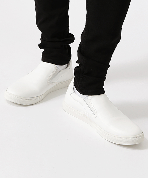 レザーで作製することでワンランク上の『スタイリッシュなスリッポン』が完成! ポルトガルのファクトリーで製作したビームスオリジナルの『レザースリッポン』。デイリーで使えるシンプルなデザインが魅力。今シーズン、バイヤー陣が目を付けたのは『スリッポン』。カジュアルテイストのアイテムにはもちろん、キレイ目コーディネートにもレザー素材なので相性◎。 様々なパンツとの『コーディネートに使いやすい』 相性が良いのは『クロップドパンツ』に『素足』・・ですが、秋冬のコーディネートは素足ではなく、『靴下チラ見せ』でテーパードの効いたチノやデニム、スラックスなどと合わせてスタイリッシュに履きこなすのがオススメ。デニムをロールアップしたり、パンツの丈のバランスを気にせずにパンツ選びを楽しめます。