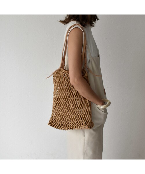 スタイリッシュなレザーの持ち手がアクセントのネットバッグ。 トート型で使い易く、取り外し可能な同系色のポーチもついています。 ■素材 フェイクレザー ポリエステル ■サイズ 縦34cm×横27cm×マチ10cm ショルダー紐 約58cm(調整不可) こちらは、クロネコ宅急便で発送商品になりますので、お届けまでに発送から1~2日かかります。