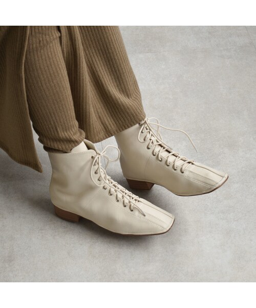 すっきりとした細身のシルエットで、カジュアルになりすぎないデザインになっています。スカートスタイルからパンツスタイルまで、幅広いコーディネートに合わせて頂けます。 ■サイズ 23.5/24.5 ヒール高さ:3cm ■素材 本体 エコレザー 底材 ゴム材 ■サイズ感 【普段23.5cm(甲高足) スタッフⅠ】 23.5cmは普通の靴下を履いてピッタリジャストサイズ!なので厚手の靴下を履くならば、24.5cmで編み上げの紐で調整をして履きたいです。 【普段24cm スタッフⅡ】 24.5cm:足先2cm程余裕があり、足幅も少し余裕のあるサイズ感でした。厚手の靴下を履いても履けそうです。 編み上げブーツなのである程度のサイズ感は紐の締め具合で調節できそうです。 23.5cm:薄めの靴下を履いてピッタリサイズです。厚手の靴下を履く事を考えたら24.5cmが良いです。 こちらは、クロネコ宅急便で発送商品になりますので、お届けまでに発送から1~2日かかります。 サイズ変更にともないます送料に関しましては全てお客様負担になります。
