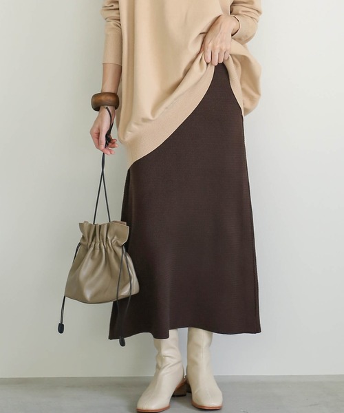 程よいフレア感が魅力のニットスカート。厚地でしっかりとした糸で編まれたニットを使用し、細かい編地がニュアンスのある風合いに。腰からヒップにかけてボディになじむタイトなサイズ感に仕立て、裾をフレアにすることで女性らしい綺麗なシルエットが出ます。ボリューム感のあるニットやロングTシャツなどと好相性で様々なスタイリングに活躍するおすすめのアイテムです。※モニター・環境等により実際の商品と多少色味が異なって表示される場合がございます。 予めご了承をお願いいたします。【お買いものをお楽しみいただく為に!】▼商品のお気に入り登録完売カラーの再入荷通知や、ラスト1点の通知、セールの通知も受け取ることができます。▼ブランドのお気に入り登録新商品や再入荷など、いち早くブランドのお得な情報を受け取ることができます!