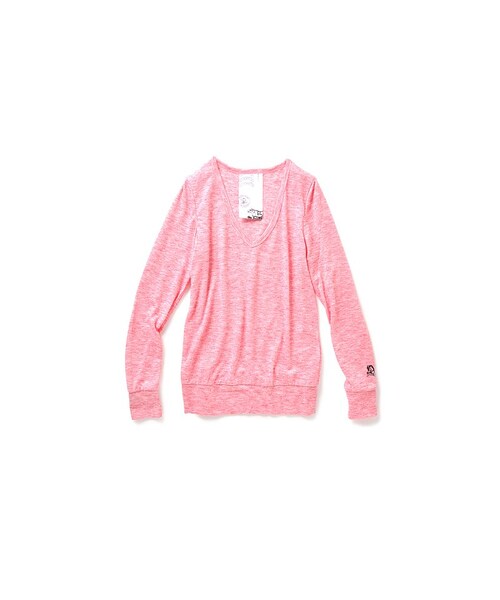 NUSYで定番人気のVネックニットが、カットソー素材にリニューアル☆ シルエットの美しさにファンの多いVネックニットを、着心地のよいカットソー素材にアレンジしました。ふんわりした同系色の濃淡ニュアンスがかわいい生地は、デニムやチノなど、定番ボトムスとの相性もばっちり。からだのラインをすっきりキレイに見せてくれる、つかず離れずの黄金シルエットも健在です。