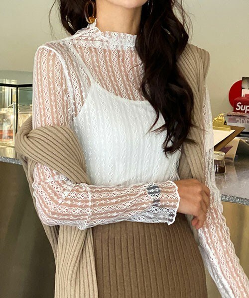 プチプラ¥1,397! レイヤードにぴったりなシースルーレースのブラウス* ※WEARに記載してある金額と、DHOLIC通販サイトに記載してある金額にシステム都合上、稀に誤差が生じます。正しい金額はDHOLIC通販サイトに記載された金額です。