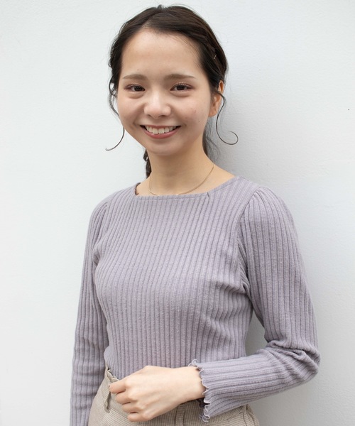 太め幅のリブが大人めな雰囲気のリブトップス。1枚でも、キャミワンピなどのレイヤードアイテムとしても楽しめるようにすっきりと着られるサイズ感に仕上げました。肩にギャザーを寄せたバルーン袖で、シンプルすぎないデザインです。気になる肩まわりや二の腕まわりがぴちっとしないので体型カバー効果も◎開きすぎないスクエアネックなのでインナーが気になりにくいのもうれしいポイント!あたたく柔らかいふわふわな触り心地の生地で、この時期におすすめな1枚です。