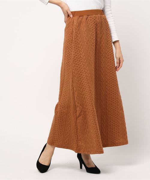 立体感がありながら着ぶくれしにくいケーブル柄カットソーマキシ丈スカート。ほのかに広がったシルエットが女性らしい着こなしを叶えてくれます。長めの丈感が上品な大人っぽさを演出します。同素材のトップス(ブランド品番:C4295)と合わせてセットアップとしてはもちろん、単品でも着回しやすい優秀アイテム。【素材・サイズ感】柔らかく滑らかな肌あたりのカットソー素材。ウエストはオールゴム仕様なのでストレスフリーな履き心地。デイリーからお出掛けまでコーディネートの幅が広がります。