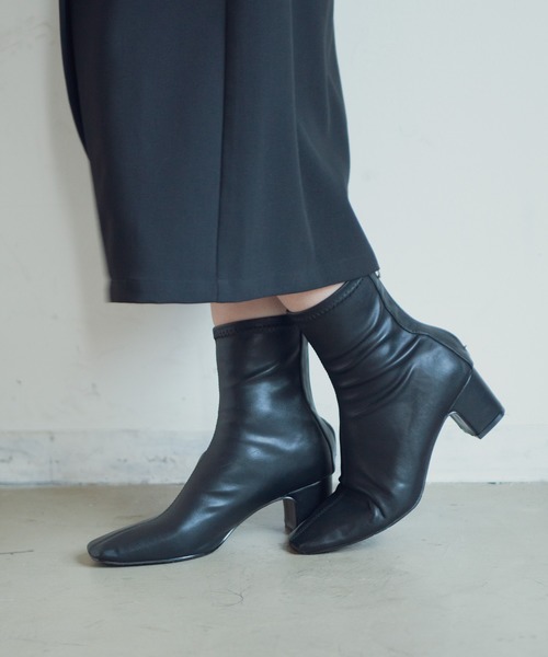 【AUNT MARIE'S ストレッチショートブーツ】 ロングシーズン履ける足首までのショートブーツ。 くたっとした履き心地の良いフェイクレザーは、ほどよく足首にフィット。 ヒールも高すぎず、歩きやすさ、履きやすさもポイントです◎ 裏が微起毛になっており、冬にも暖かくお使いいただけます。