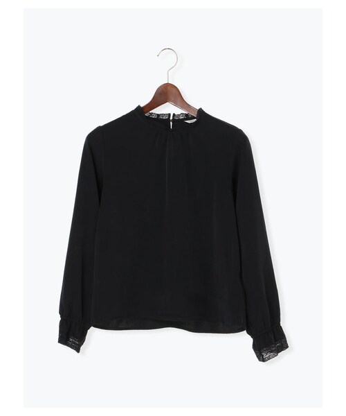 スタンドカラーにレースをあしらい端正なルックスに仕上げたロングスリーブブラウス。 袖口をゴムできゅっと絞ったキャンディースリーブが可愛らしく、フェミニンムードを盛り上げます。 1枚着としてもインナー使いとしても重宝するブラウスは、ワードローブのマストハブアイテムです。