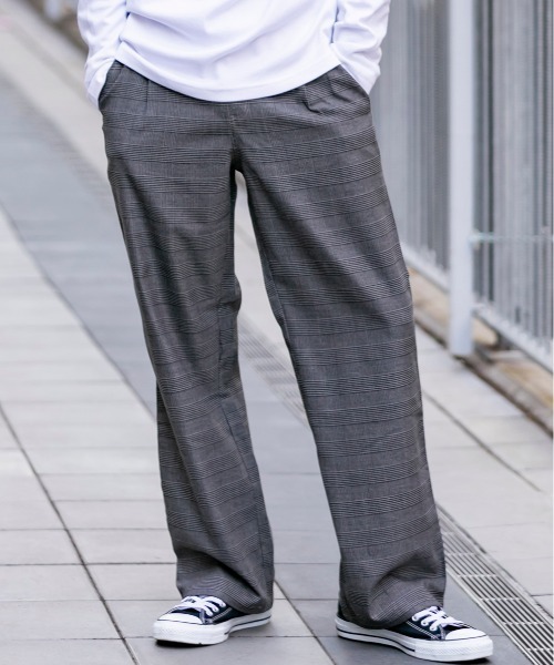 旬のワイドパンツもリラックス風味で楽しむ!! ストリートで人気のワイドパンツですが、やりすぎないややルーズ感で太目パンツ初心者の方でも試しやすいシルエットになっています! 履くだけで今どきのトレンド感を作ってくれる心強いアイテムです! サラっとした履き心地のT/R素材(ポリエステル/レーヨン)で、シーズンレスなのもうれしい! 程よくハリコシのある素材だからシルエットもきれいにキマります。 丈も長すぎないバランス良い仕上がりです! ウエストは紐付きなのでベルト要らずでストレスなくラクラク着用できます! Tシャツやスニ-カ-を合わせるだけでヌケ感のある旬なスタイルが完成! ジャケット合わせは、ラフでリラックスだけど清潔感あるキレイめなコーデが完成しますよ! イ-ジ-ケアな素材だからお手入れも簡単なのも嬉しいですよね。