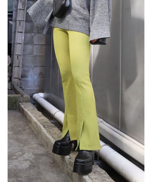■美脚効果抜群の人気フレアパンツが20SSも登場■ リブ素材を使用したフレアパンツです。 伸縮性があり、履き心地が良く、着脱もしやすいアイテム! フロントに切替が入っているので、直線のラインが強調され美脚効果があります。 裾に向かって広がるシルエットは、脚長効果も! シンプルなデザインなので、カジュアル、きれいめ等様々なスタイリングに取り入れて頂けます★ ・リブ素材のフレアパンツ ・伸縮性があり、履き心地が〇 ・フロントに切り替えが入っているため、美脚効果が期待 ・裾に向かって広がるシルエットは脚長効果も ・どんなスタイリングにも取り入れやすいシンプルなデザイン ※先端のスリットはなくなります。予めご了承ください。