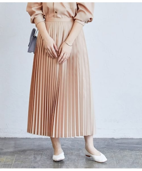 シンプルなデザインでミニマルに仕上げたプリーツスカート。日本毛織の代表的な品のある緻密な梳毛ファブリックを使用。ウールの<上質さ>とシンセティックファイバーの<力強さ>の両面を併せ持つユニークなスペシャルファブリックです。コンパクトな表面感とさらりとしたドライなタッチが特徴で、品のある雰囲気が生まれます。しなやかなドレープ性があり、女性らしさも演出。ウエストはすっきりとさせ、裾に向かってアコーディオンのツイストをかけて動きのあるデザインに仕上げました。ユニフォームにも使用される素材でシワになりづらいので何