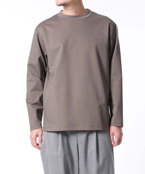 上質なジャージ素材で仕立てた、オールシーズン活躍する万能なロンT〈NORITAKE〉愛知一宮の老舗ジャージーメーカー。丁寧な素材づくりから、綺麗でスポーツライクな上質素材を得意としている。【素材】細番手の綿とストレッチ糸を交編し、度目を詰め、ハイゲージの機械でポンチ組織で編みたてています。もともと毛羽の少ないコンパクト糸という原料を使い、さらにバイオ加工で毛羽を取り除いています。それに加えて、シルケット加工を施すことで、適度なハリ感があり、ストレッチ性にも優れています。【デザイン】程良くゆったりしたシルエットのロンTです。上品な見た目かつ、ハリコシもあるので、立体感のあるシルエットに。1枚でも存在感のあるロンTに仕上がっています。冬はダウンや重衣料のインナーとして、春先は羽織りのインナーや1枚着としても使えるオールシーズン使える万能アイテムです。