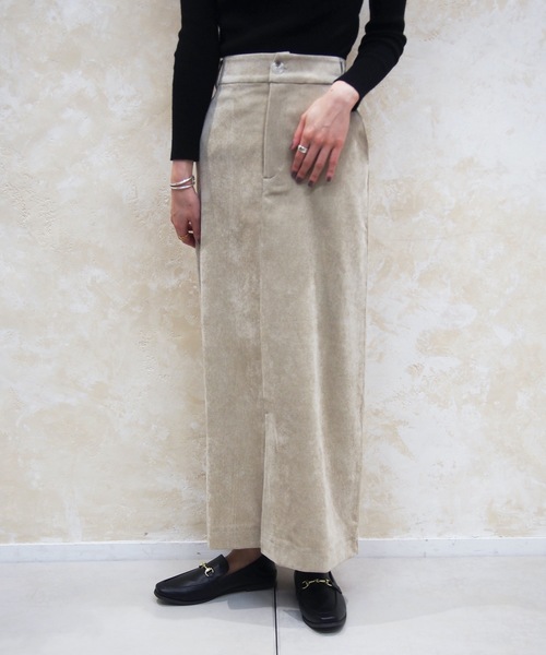 コーデュロイ生地を使用した、シーズンムード漂うスカート。程よくタイトなシルエットで女性らしさをプラスし、フロントのスリットで抜け感を演出してくれます。ウエスト部分はゴム仕様なので、ストレスフリーな穿き心地も魅力。トレンドライクなスタイルを楽しめるアイテムです。----------《Information》----------【商品のお気に入り登録】→カートに入れる右側の【♡マーク】をクリック!完売カラーの再入荷通知やラスト1点の通知、セールの通知を受け取ることができます。【ブランドのお気に入り登録】→ブランドタグのページから【♡お気に入りショップに追加】をクリック!新商品や再入荷など、ブランドのお得な情報をいち早く受け取ることができます。是非ご登録頂き、お買い物をお楽しみください◎