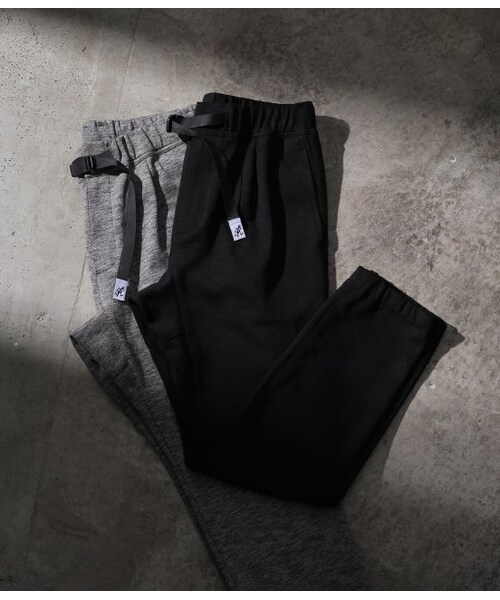 【GRAMICCI for ADAM ET ROPE'】2020年春夏シーズンの別注第1弾は、COOLMAXのスウェット素材を使用したジョガーパンツが登場。アダムエロペ独自のスリムシルエットに仕上げています。速乾性をもつCOOLMAX素材を使用し、寒さの残る季節から初夏までロングシーズン大活躍。スニーカーを見せるスタイルとも相性抜群で、全体がすっきりまとまったことでルーズに傾きすぎず、大人の男性も取りいれやすいのが魅力です。今季もトレンド継続のストリートスタイルや、スポーツMIXにもおすす