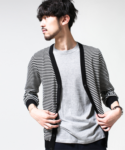 ◆nano・universe◆(ナノ・ユニバース)『最高品質ウールを使用した上質な1着』羊毛の中でも最高品質と言われるエクストラファインメリノウールを使用したオリジナルのニットが登場! 上品な光沢と滑らかな肌触りが質の良さを際立たせます。エクストラファインメリノウールとは…羊毛の中でも最高級とされるウール・メリノウール。他の種類の羊毛と比べ、繊維が細く、ソフトな肌触りが特徴です。そのメリノウールの中でも特に繊維の細いものがエクストラファインメリノと呼ばれています。『ベーシックながらディテール使いで差がつくボーダーカーデ』一見ベーシックなボーダーのカーディガンですが、両脇にデザインリブを編みこみ、衿裏には配色のひとつとしてラインを施すなど、さりげないアクセントを加えています。他にも、裾の両サイドにレザーパッチを施し、背中の接ぎ目は編み方向を変えるなど、細部に至るまで楽しめる仕様に。衿周りと前立て、袖をボディと切り替え、引き締まった都会的な表情をプラスしているのもポイントです。 nano・universe model:H178 B80 W70 H90 着用サイズ:MEDIUM ※画像の商品はサンプルです。実際の商品と仕様、加工、サイズが若干異なる場合がございます。