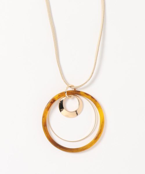 ゴールドカラーのメタルフープとマーブル模様のフープを組み合わせたロングネックレス。シンプルかつ上品な雰囲気で、様々なコーディネートに活躍します。 ※こちらの商品は1点1点職人による手作りとなります。その為、形や色合い・マーブル模様など若干異なる場合がございます。あらかじめご了承ください。 Amina Collection Co.,LTD.