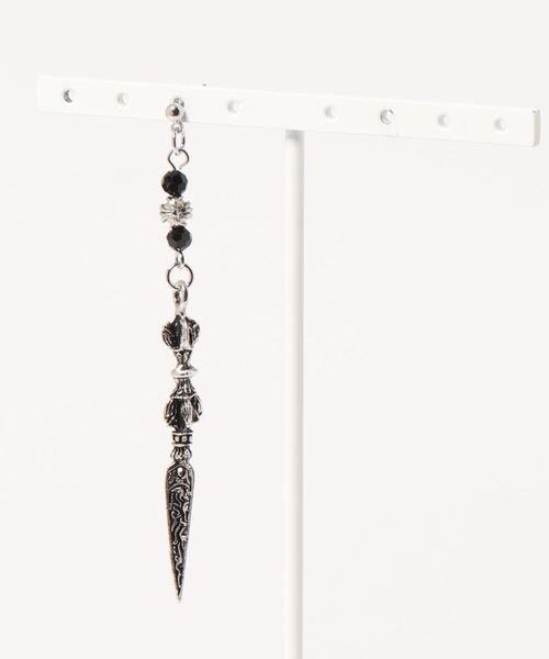 エスニックモチーフがクールな片耳用のメタルピアス。耳元のアクセントに◎。他のピアスと組み合わせてお使いいただくのもおすすめです。 ※こちらの商品は1点1点職人による手作りとなります。その為、形や色合いなど若干異なる場合がございます。あらかじめご了承ください。 <価格改定のお知らせ> 2023年9月12日より、素材費高騰の諸事情により価格改定をさせて頂きます。 商品タグに記載している価格につきまして、旧価格のものが混在している場合がございます。 ご了承くださいますよう、お願い申し上げます。 Amina Collection Co.,LTD.