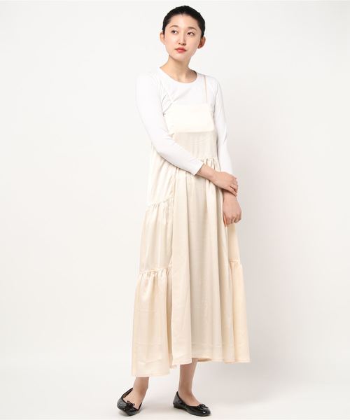 サテン生地がおしゃれなキャミワンピース★ ふんわりとしたシルエットが女性らしい印象に仕上げます! 裏地付きなので透けることなく安心して着用できます!