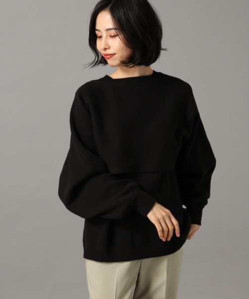 ショート丈の長袖ニットと、ノースリーブニットがセットになった2Pアイテム。胸下までのショート丈なのでお持ちのシャツなどと合わせて頂いてもかわいいです。また、インナーに着ているノースリーブニットはベストのように使えて、様々な着方で楽しめるセットアイテムになっています♪