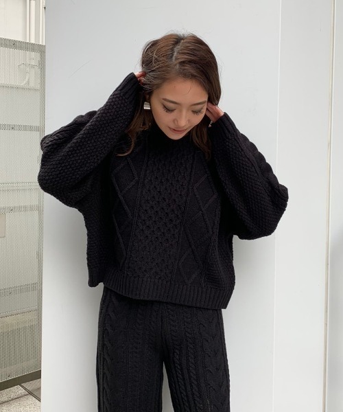 ざっくりとした風合いと豊かな表情を見せるケーブル模様が魅力的なバルキーニットプルオーバー