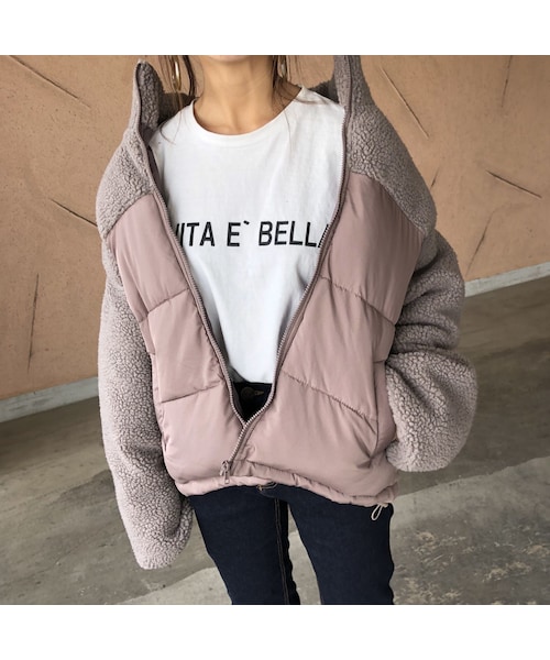 今年トレンドのボアと冬の定番中綿コートが登場! ボア部分は本体と同色なのでシンプルなデザイン♪ 首回りからしっかりと防寒してくれるスタンドカラーで真冬にぴったりの一押しアウターです☆ ※モデル身長:161㎝ ◆カラー モカブラウン ・ブラック ◆サイズ 着丈/64.5cm 身巾/125.2cm 裾幅/124cm 袖丈/62cm ※多少の誤差は予めご了承ください。 ◆素材 表地ポリエステル100% 裏地ポリエステル100% 別布ポリエステル100% 中わたポリエステル100%