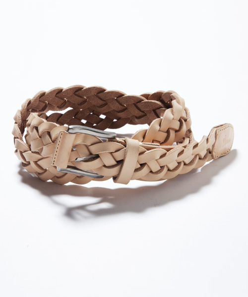 前シーズンから展開し、 大好評いただいているエイジングレザーシリーズの新作。 エイジングレザーとは、 経年変化を楽しんで頂くための革。 鞣しの段階で、極力原皮に近い状態で仕上げることで、 革本来の経年変化を引き出しています。 今回は4本編みのメッシュベルトを仕立てました。 細く裂いた皮を細ベルトに仕上げることで、 綺麗で上品な印象に仕上がりました。