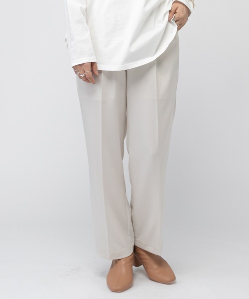 サテン生地でシャイニー感がたっぷり、遊び心のある1枚◎ ウエストゴムでリラックスのできる履き心地ながらも、センターにタックが入っていて スタイルアップも出来るアイテムになっています。 シャツに一枚で履いても良いですし、ロング丈のロンTやワンピース、ジャケットスタイルなどにも 着まわしていただけます。 一枚あるだけで、スタイリングが華やかになるアイテムです!