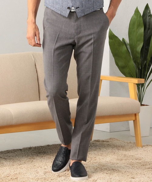 【ON/OFF兼用 清涼感と伸縮性で快適な履き心地の上品パンツ】春夏の汗ばむ季節にうってつけの清涼感、そして非常にストレッチの効いたポリエステルパンツです。信頼感や清潔感があり、コーディネートにも合わせやすい『ホワイト』穏やかで上品な印象の『グレー』爽やかさと誠実な印象の『ブルー』の3色展開。【デザイン】クリースラインの入った綺麗めなデザインで、すっきりとした見た目のビジカジ兼用で使えるパンツです。ウエストの内側には「MEN'S BIGI」ネーム入りのゴム素材ロゴテープをあしらい、シャツの飛び出しを防いでくれる役割を果たします。【素材】ホワイトは、透け感を極力抑えた高密度のチノ素材を使用。サックスブルーとグレーは、麻調の清涼感のあるてろっとした肌触りです。ビジネス、カジュアルどちらのスタイルにも重宝します。ご自宅でお洗濯可能なウォッシャブル仕様です。【コーディネート】「ホワイト」はネイビー系のアイテムと合わせるとコントラストが良く出ます。ブラウン系のジャケットも相性抜群です。「サックスブルー」は、白シャツやベージュ系のジャケットが好相性。春らしい爽やかなスタイリングになります。「グレー」はホワイト、ネイビー系のトップスと合わせるのがおすすめです。【サイズ表記に関して】商品タグにはサイズ部分に数字が表記されています。00はSSサイズ, 01はSサイズ, 02はMサイズ, 03はLサイズ, 04はLLサイズを表します。※着用画像は光の加減等で仕様が異なる場合があります。※着用画像はサンプルのため仕様が異なる場合があります。