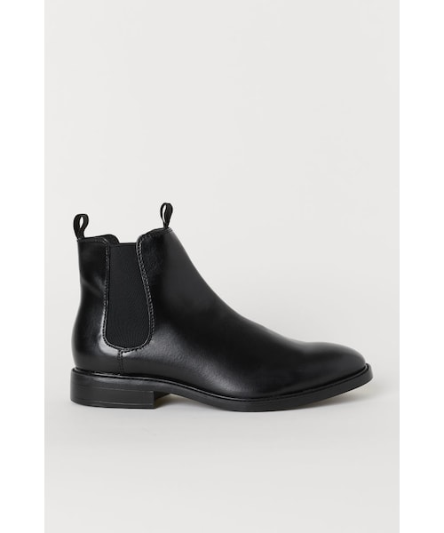 フェイクレザーのチェルシーブーツ。サイドゴア付き。フロントとバックにループ付き。キャンバス素材のライニングとインソール付き。ヒール 3cm。