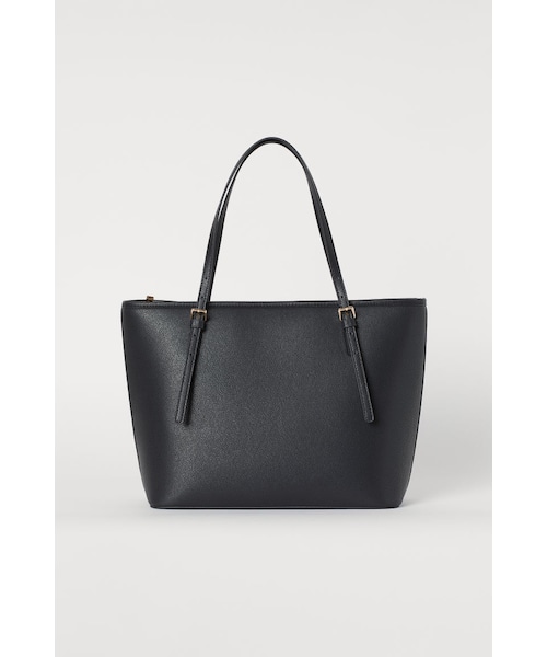 フェイクレザーのハンドバッグ。トップはジッパー開閉。ダブルハンドルで、ハンドルの長さは調節可能。インナーポケットが2つあり、そのうち1つはジッパータイプ。サイズ 14x27x32cm。