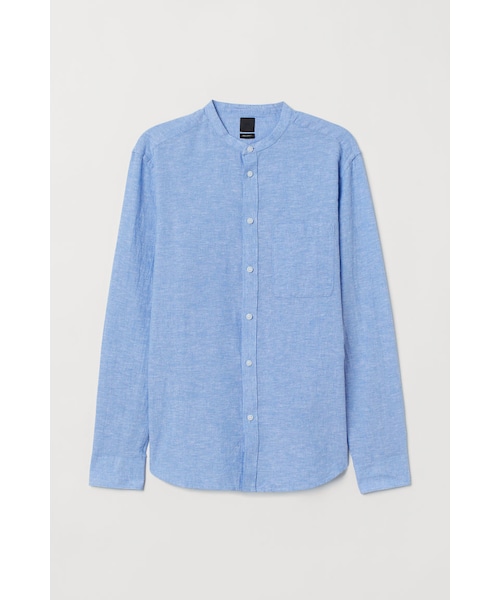 リネンとコットンを使用した織物素材のシャツ。グランドファーザーカラー。フロントはクラシカルなスタイル。バックヨーク付き。オープンタイプの片胸ポケット付き。カフスが付いた長袖。裾はラウンドカット。レギュラーフィット―動きやすいゆとりがあり、ウエスト部分をゆるやかに絞ったクラシックなフィット。着心地のよいテーラードシルエットを創り出します。