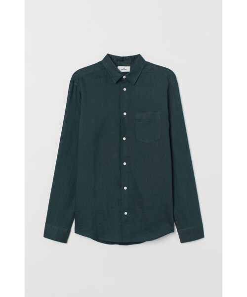 リネン素材の長袖シャツ。ストレートスタイル。ターンダウンカラーで、フレンチフロント。オープンタイプの片胸ポケット付き。バックヨーク付き。袖口周りをボタンで調節できます。裾はラウンドカット。