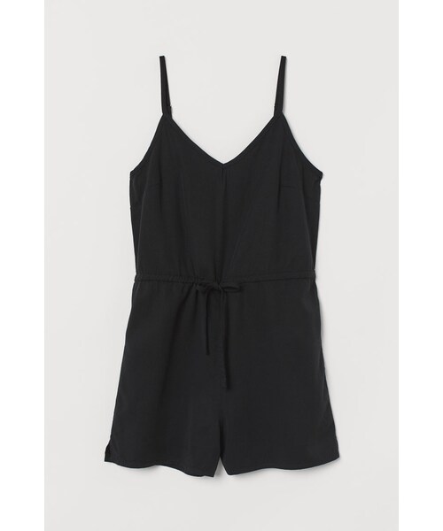 テンセル™リヨセルを使用した、ソフトなウォッシュデニム素材のショートオールインワン。細いショルダーストラップが付いたスタイルで、ストラップの長さは調節可能。Vネック。リラックスフィット。ウエストにドローストリング入り。ワイドレッグで、裾にスリット入り。