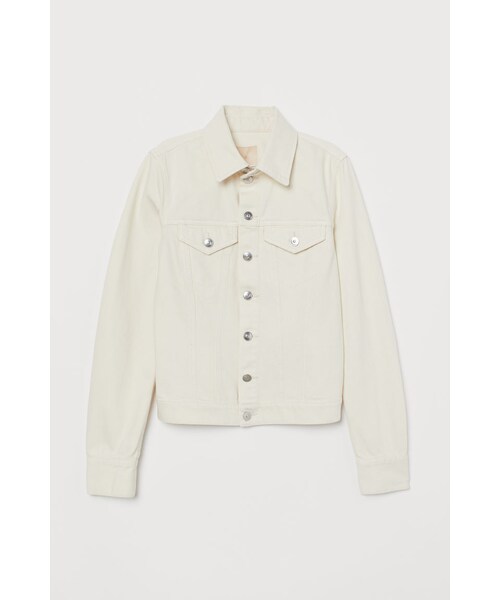 コットンのウォッシュデニムを使用したジャケット。襟付きで、フロントボタン。フラップ&ボタン付きの胸ポケットが左右に施されています。ボタン留めのカフスが付いた長袖。