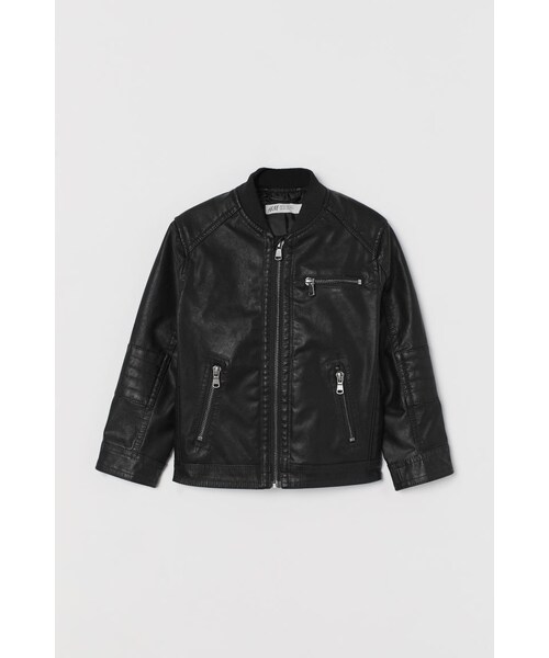 フェイクレザーのバイカージャケット。一部にキルティングが施されています。リブのスタンドカラー。チンガード付きのフロントジップ。ジッパータイプの胸ポケット1つとサイドポケット付き。裏地あり。