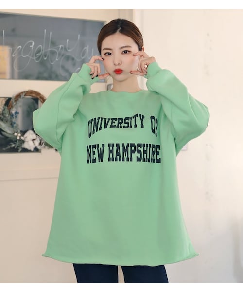 ルーズシルエットで体型をカバーし、ドロップショルダーラインで華奢なシルエットを演出します。ヒップを覆う着丈感で誰でも気軽に着用でき、丈夫に仕上げたネックラインと袖口で外部からの風を遮断し暖かく着られます。裾のスリットディテールで動きやすさをプラス!ふわふわな両起毛素材で毎日着たくなります♥フロントのプリントでカジュアルなポイントをプラスしたデイリースウェット、グレー、ミント、ライトベージュの3カラー展開です。