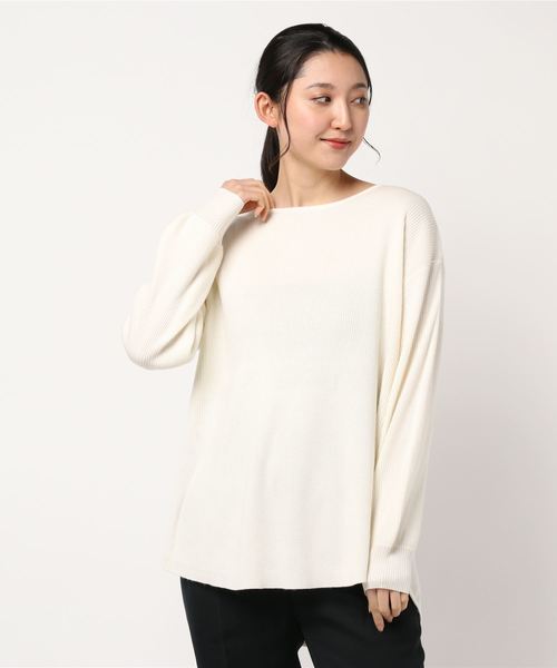 ボートネックでデコルテラインを綺麗に魅せ、女性らしさを演出してくれるプルオーバーが登場致しました。ゆったりシルエットとサイドのスリットで大人の抜け感をプラス。前後の切替デザインがさりげないアクセントを創り出し、パンツからスカートスタイルまで合わせやすいシンプルさも魅力的なアイテムです。